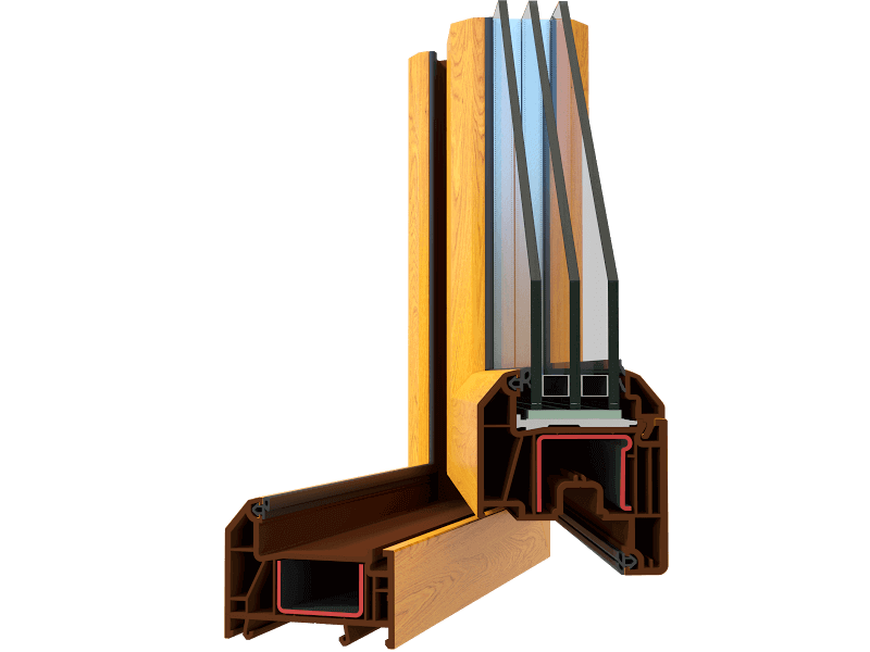 • Профиль - Rehau Thermo(двусторонняя ламинация орех)